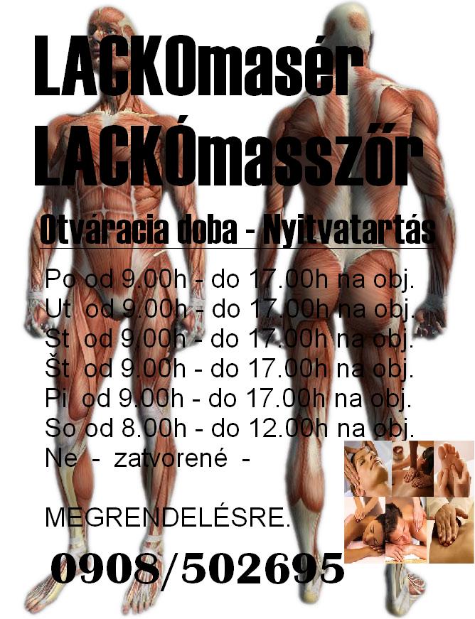 Poznámka: Pod pojmom masáž sa rozumie ošetrenie, ktoré pozostáva hlavne z mazania, trenia, hnietenia a drobných úderov, ktoré sú aplikované na celé telo, alebo na jeho problémovú časť.